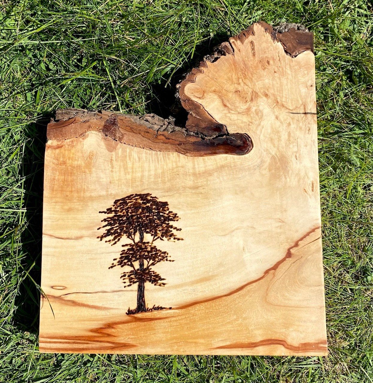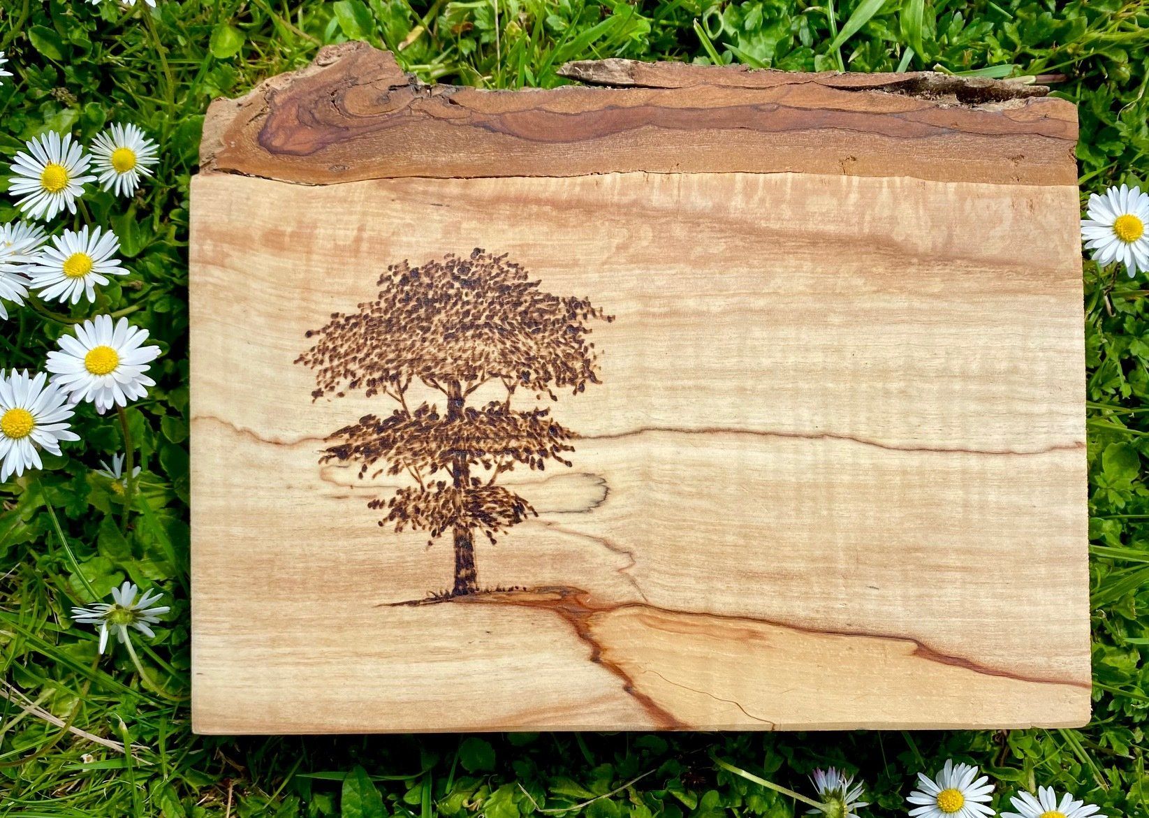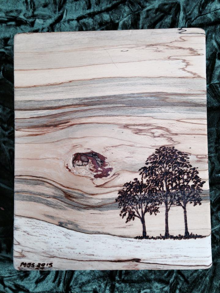 The images below are all hand drawn on to the individual piece of wood first and then the details are burnt in using the pyrography 'pen' creating a unique piece of art.