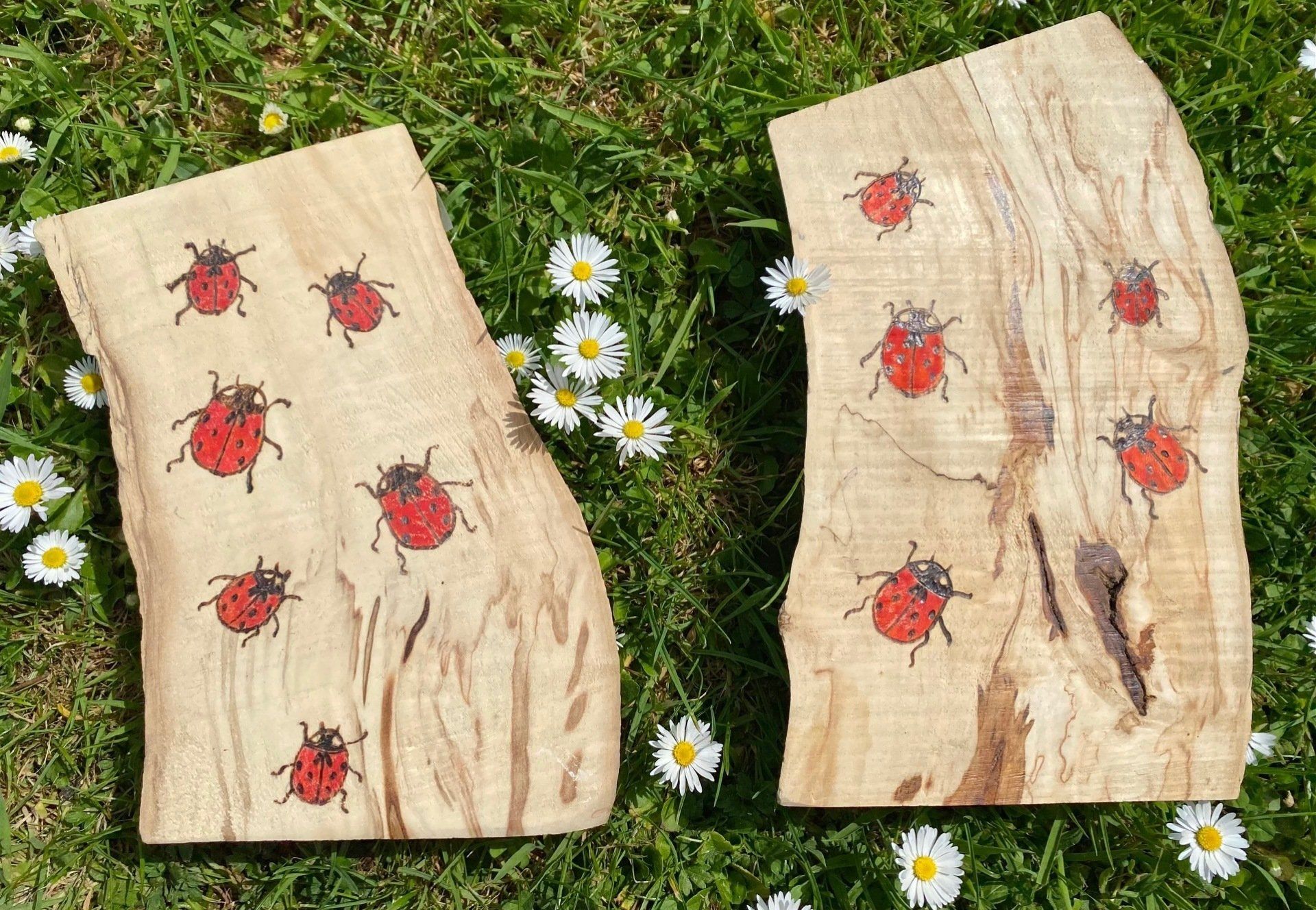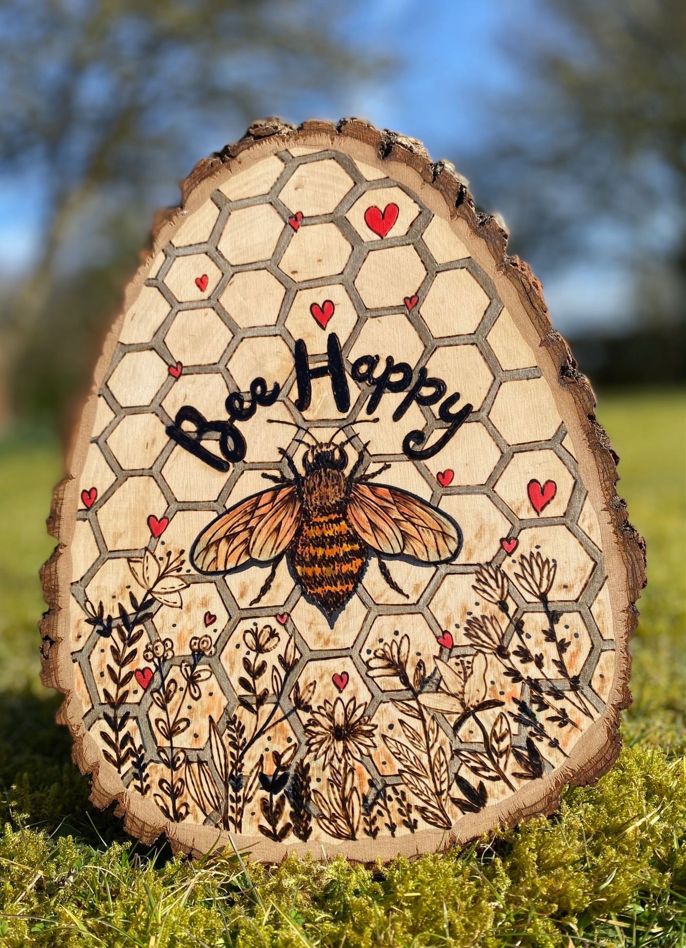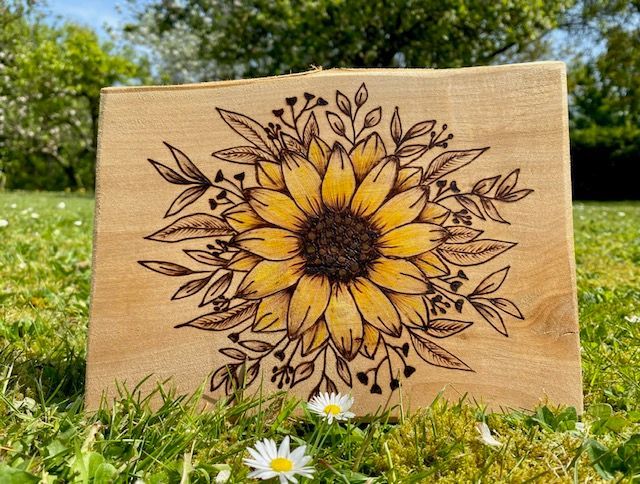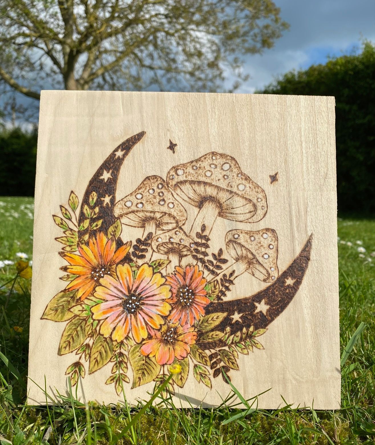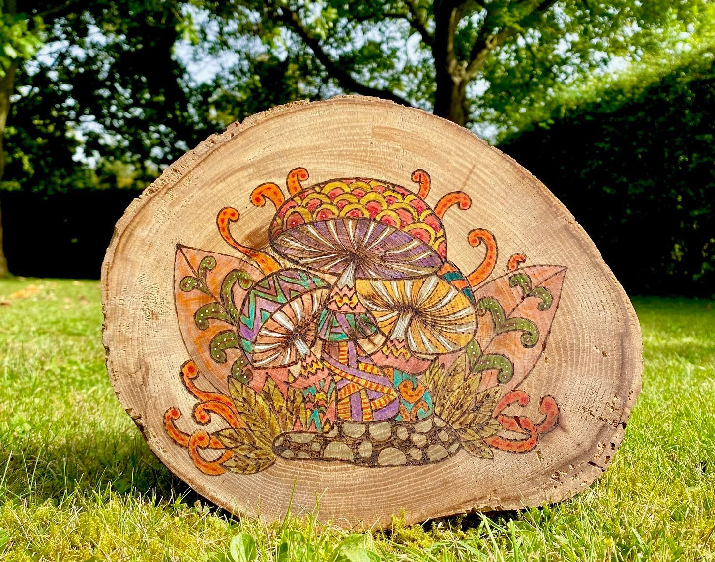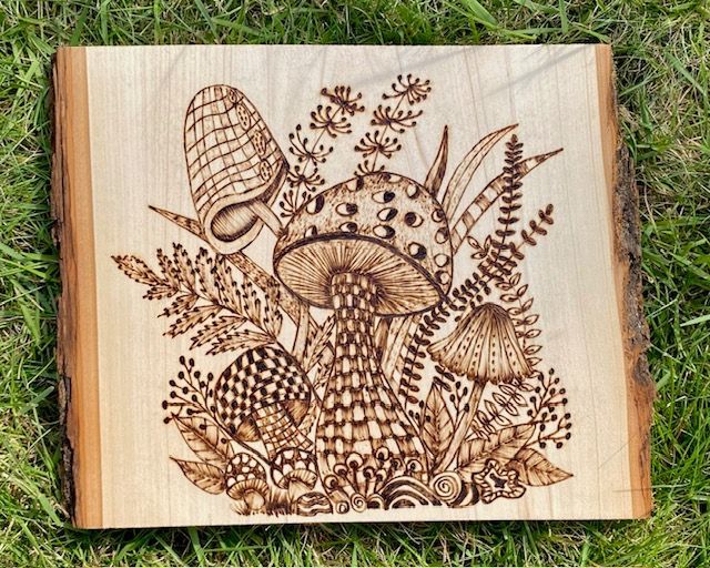 The images below are all hand drawn on to the individual piece of wood first and then the details are burnt in using the pyrography 'pen' creating a unique piece of art.