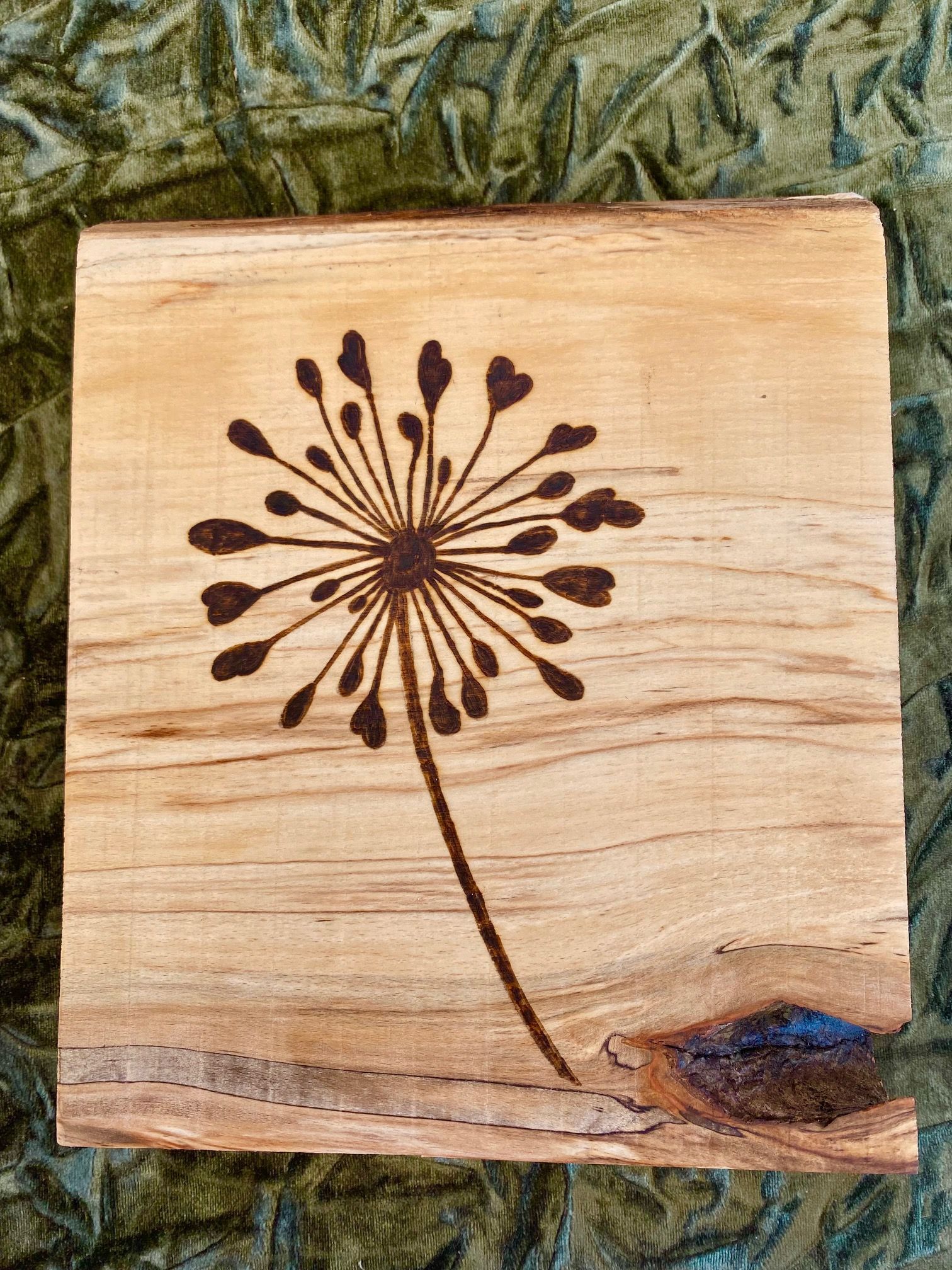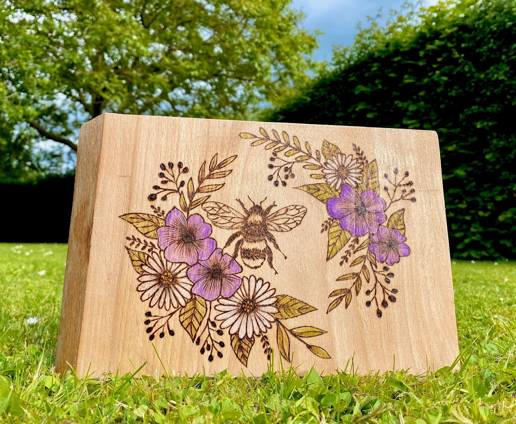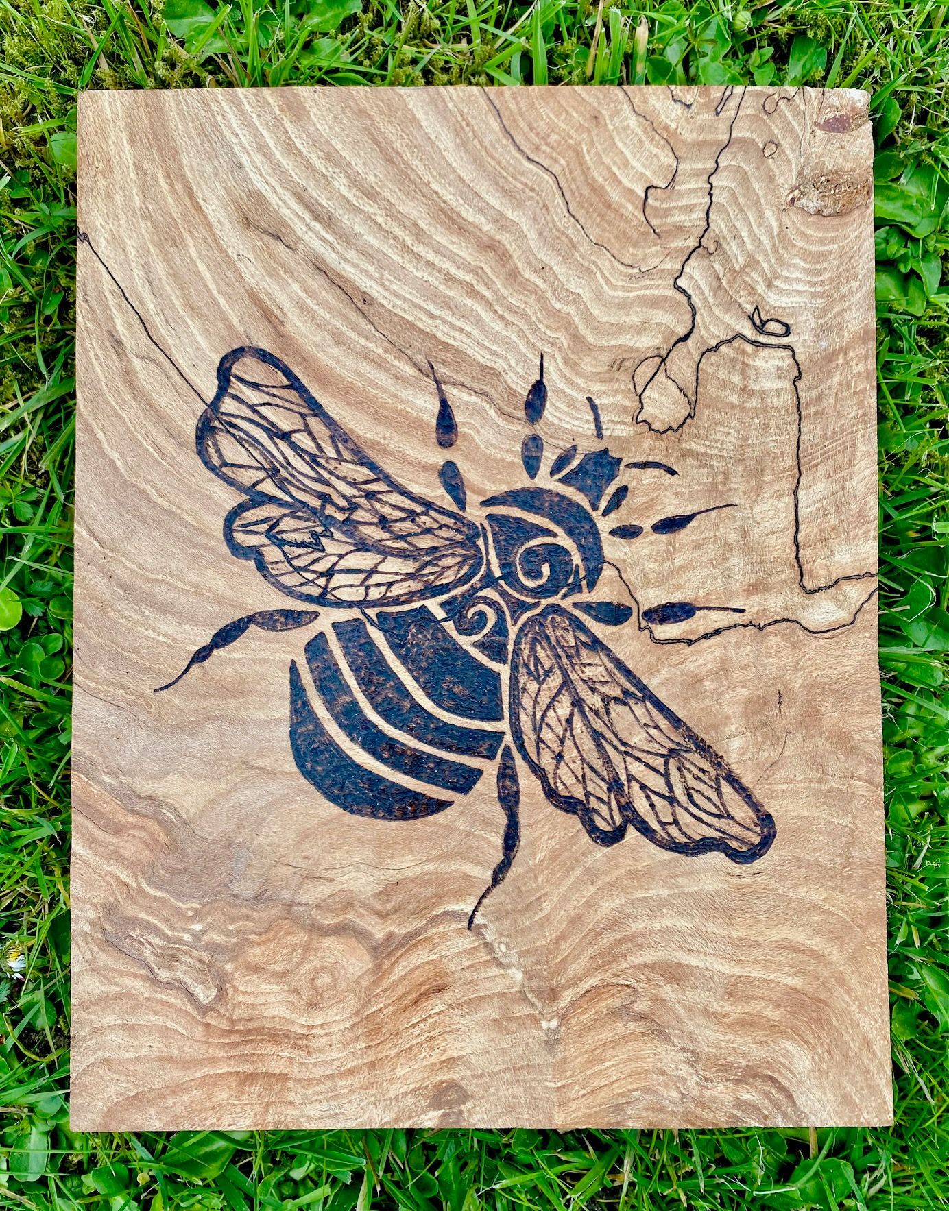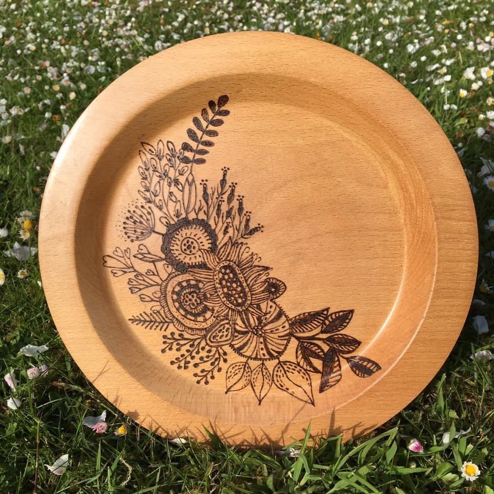 The images below are all hand drawn on to the individual piece of wood first and then the details are burnt in using the pyrography 'pen' creating a unique piece of art.