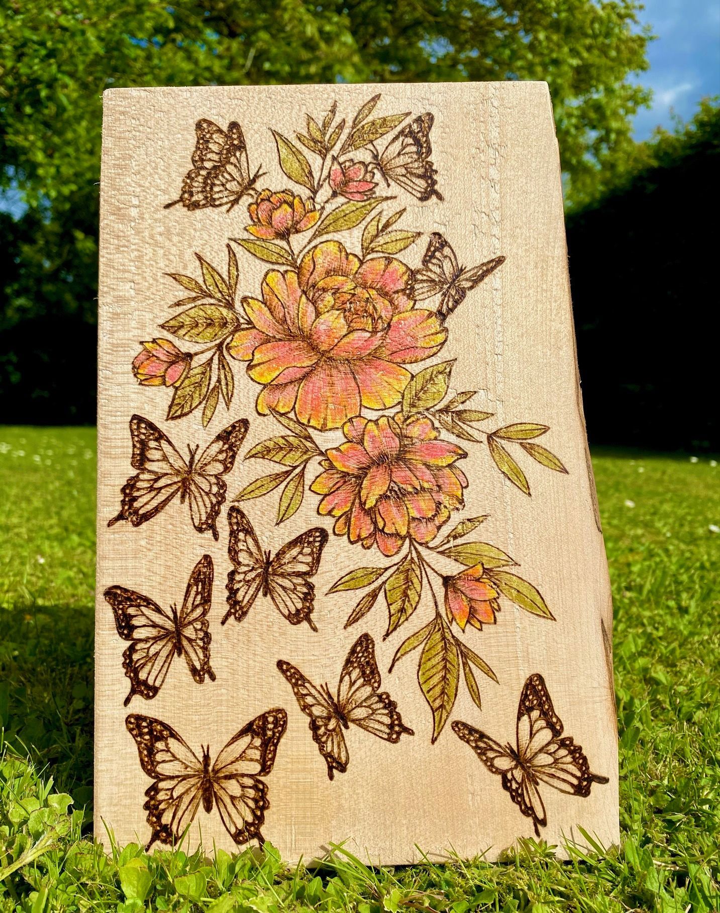 PYROGRAPHY GALLERY - FLOWERS & BUTTERFLIES